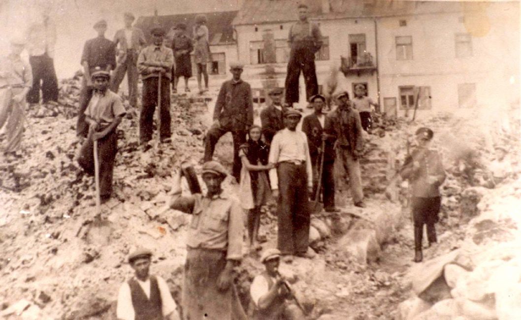 Poland, Gabin, עובדים בעבודות כפייה בגטו, בהריסות העיירה. ארכיון יד ושם, 6265