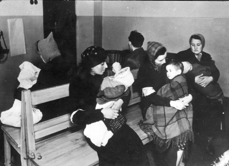 Poland ,Gorlice, נשים וילדיהם ממתינים במרפאת הגטו.