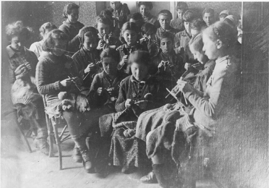 Poland ,Glebokie, עבודת כפייה, נערות סורגות בגטו.
