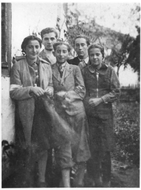 Poland ,Zurawno, סידוניה נגל אשכנזי (משמאל) עם קבוצת נערים, 1942.
