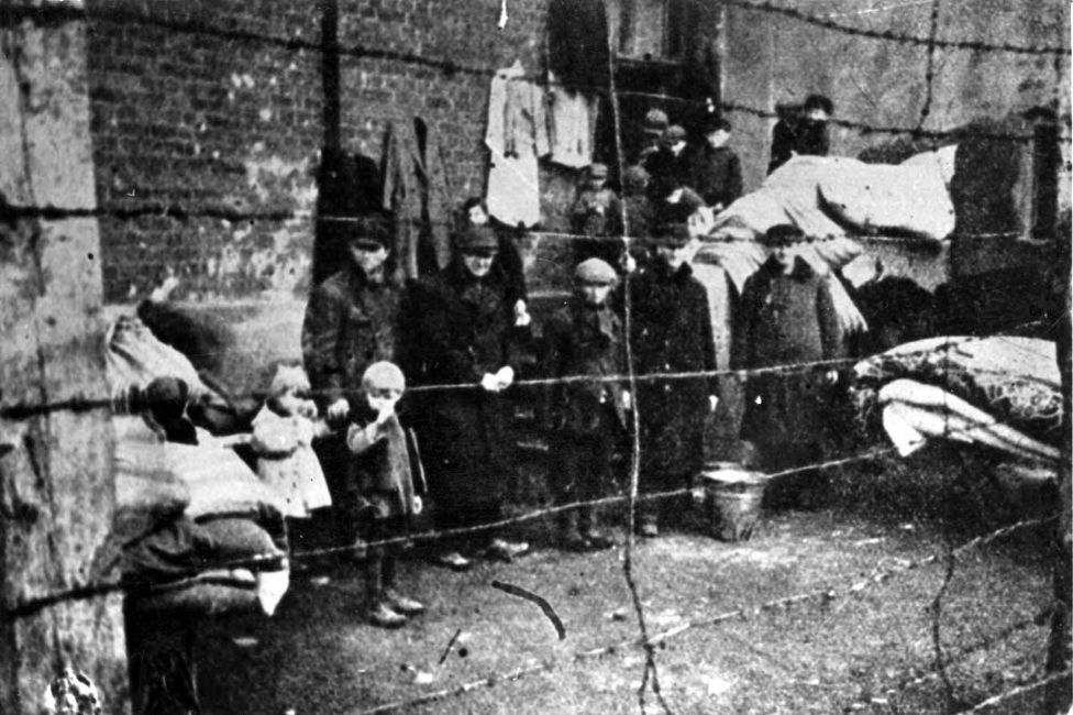 Poland ,Zychlin, אנשים מאחורי גדר תיל.