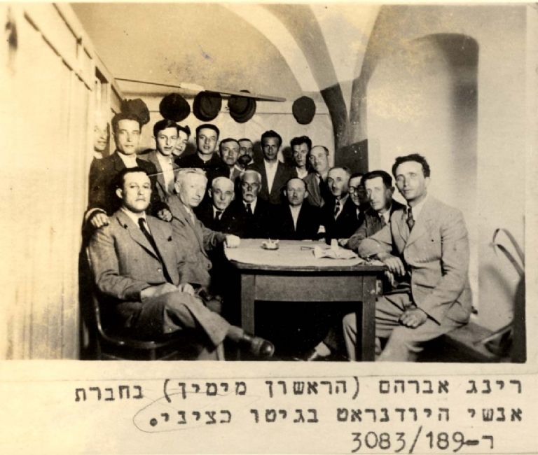 Poland ,Checiny, אברהם רינג עם אנשי היודנרט בגטו.