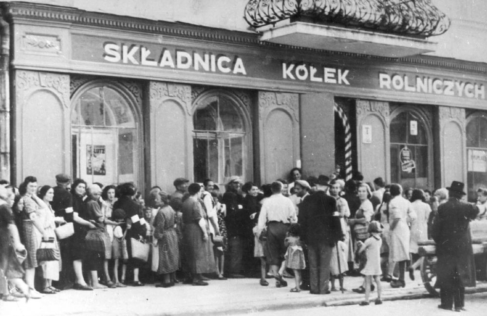 Poland ,Jaslo, יהודים מתקהלים בפתח חנות.