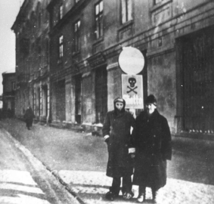 Poland ,Jaslo, שני יהודים ממשמר הגטו בפתח הגטו.