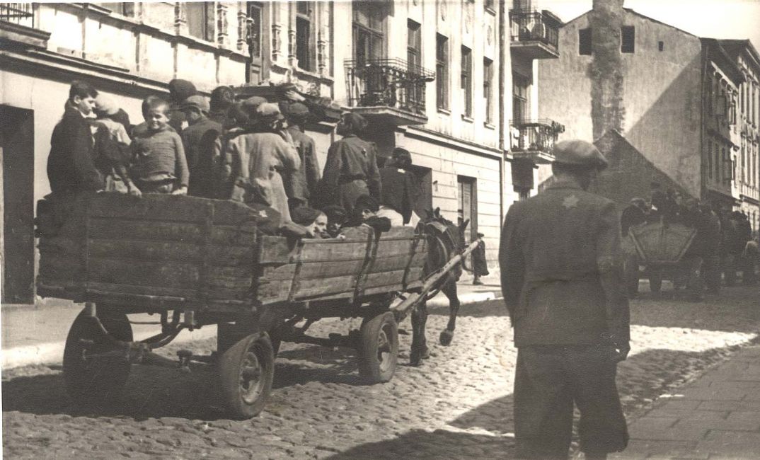 Poland ,Lodz, גירוש ילדים בעגלות סוסים, 1942.