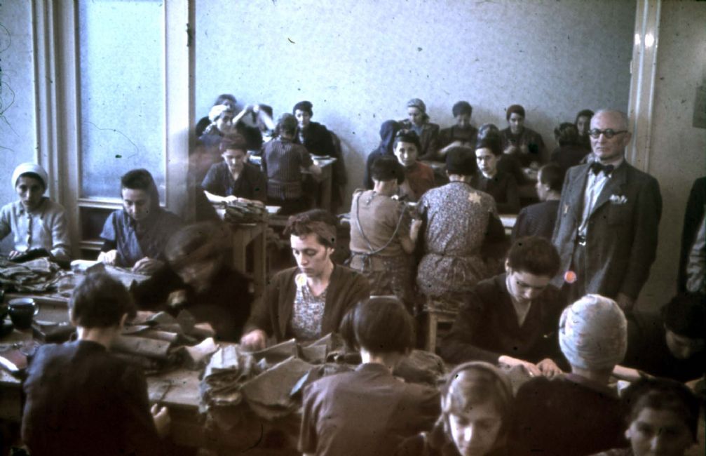 Poland ,Lodz, נשים בגטו בבית מלאכה לתפירת מדים.