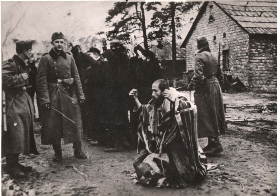 Poland ,Tarnow/Lukow, חיילים גרמנים משפילים יהודי עטוף טלית, כנראה בסתיו 1942. ארכיון יד ושם, 2746/13