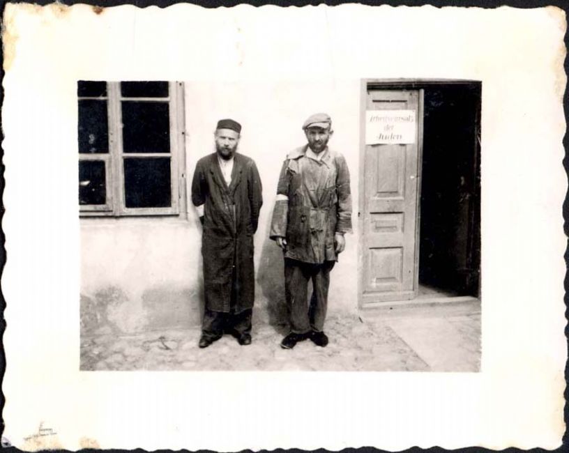 Poland ,Lukow, שני גברים יהודים ליד משרד העבודה של היודנרט. ארכיון יד ושם, 80FO3