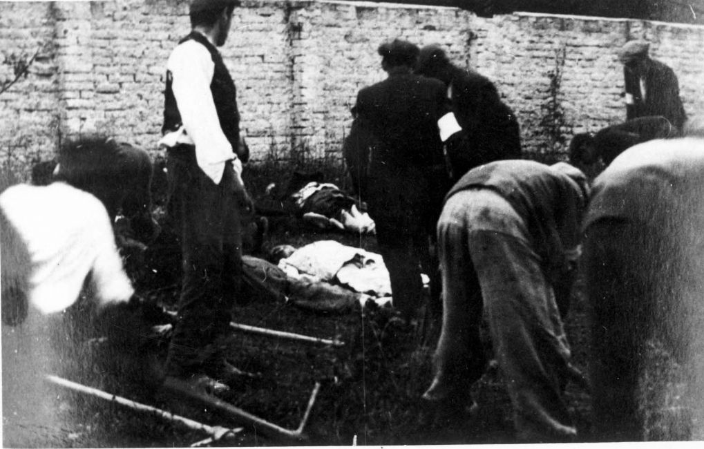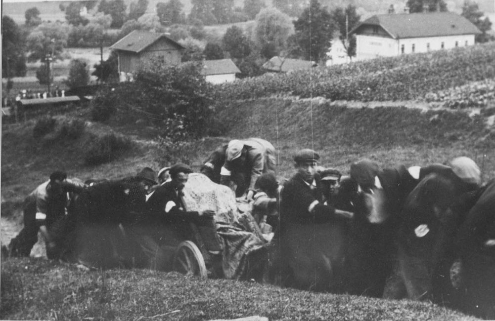Poland ,Limanowa, גברים יהודים קוברים את גופותיהם של 60 יהודים שנרצחו. ארכיון יד ושם, 1605/1676