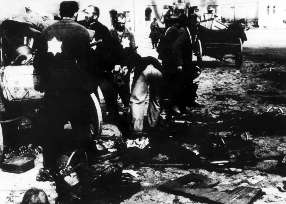 Belorussia ,Mogilev, עובדי כפייה יהודים מפנים חפצים מהרחוב. ארכיון יד ושם, 86FO7