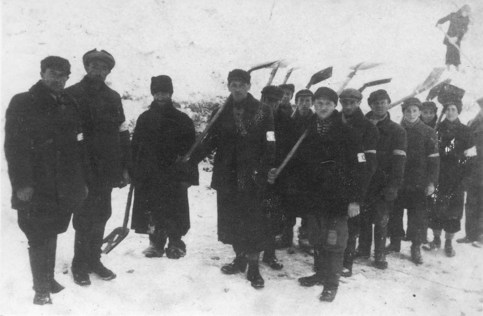 Poland ,Slawkow, יהודים מפנים שלג, עבודת כפיה 1940. ארכיון יד ושם, 4364/1