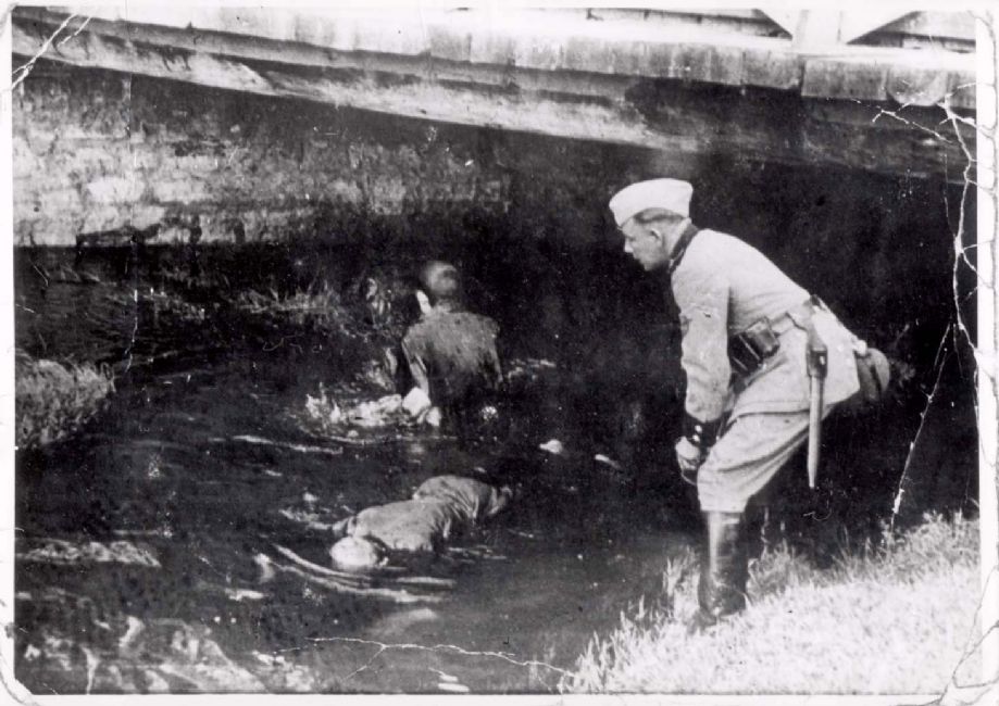 Poland ,Skarzysko Kamienna, שוטר גרמני מאלץ יהודים לטבול בביוב. ארכיון יד ושם, 74AO4