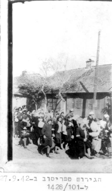 באוגוסט 1942 הגיעו לפריסוב פליטים יהודים ממינסק מזובייצקי (Minsk Mazowiecki), סטוצ'ק לוקובסקי*