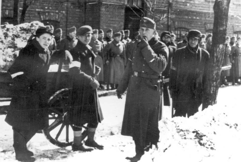 Poland ,Ciechanow, חיילים גרמנים סביב צעירים יהודים בעבודות כפייה.