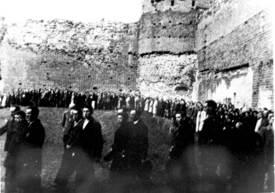 Poland ,Ciechanow, ריכוז יהודים בחצר מבצר, לפני הגירוש.
