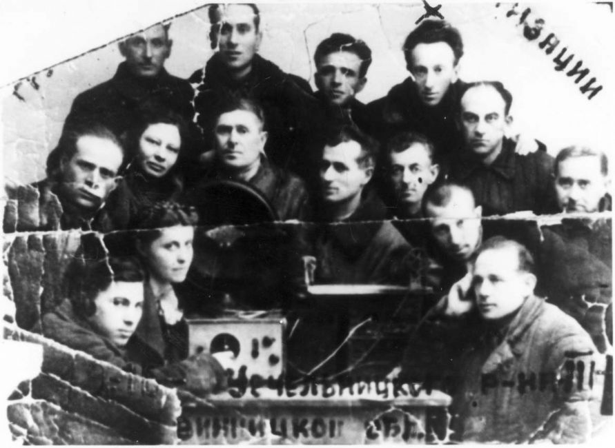 Ukraine ,Chechelnil, זלמן זיומה טייטלמן בתצלום עם חברי המחתרת בגטו.