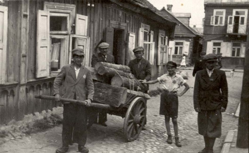 Lithuania, Kaunas, חלוקת בולי עצים להסקה בגטו, יוני 1943.