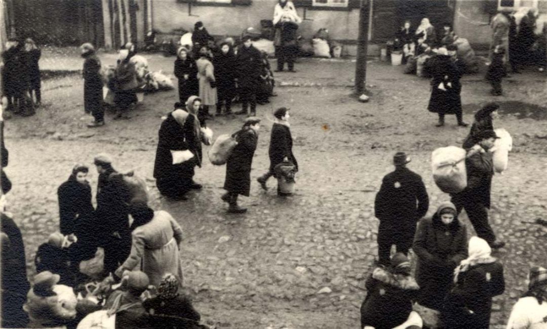 Lithuania, Kaunas, יהודים עם מטלטליהם ברחוב בגטו, לפני גירושם.