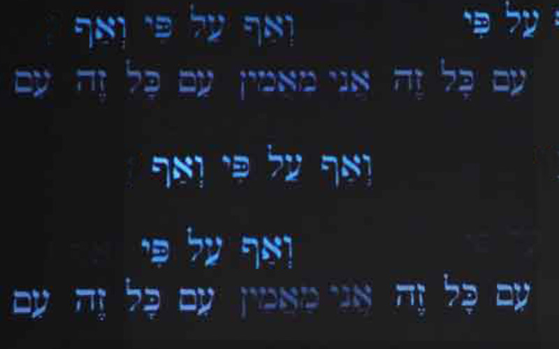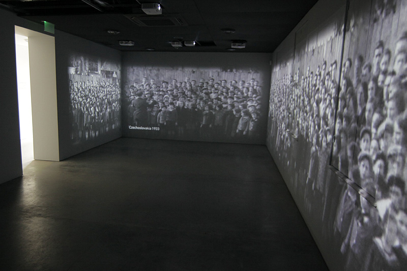 En el vestíbulo de la exposición se muestra una definición del término "Shoah" en inglés, polaco y hebreo; al final del pasillo que sale de esta se proyecta la oración "Ani maamin" (Yo creo), uno de los principios de la fe judía, y en el trasfondo se escucha una grabación coral de esta. En la sala contigua rodea al visitante un montaje cinematográfico de 360 grados sobre la vida de los judíos antes del Holocausto. Esta parte esencial de la exhibición relata la vida de los judíos asesinados. Fragmentos de películas privadas originales sobre las distintas comunidades a lo largo de Europa y el norte de África, entre las cuales destacan fotos en colores poco comunes, envuelven al visitante con escenas, voces e imágenes de hombres, mujeres y niños judíos en su medio ambiente y comunidades anteriores a la catástrofe. Esa gente, filmada en sus alegrías y duelos, en el trabajo, los estudios y las festividades, constituían un mosaico humano de estilos de vida, adherencia religiosa y ocupaciones profesionales, al igual que sus coterráneos no judíos. En el montaje fueron integradas imágenes de científicos famosos, filósofos eminentes e intelectuales prominentes. A todos, sin excepción, el régimen nazi condenó a morir, por el simple hecho de ser judíos.